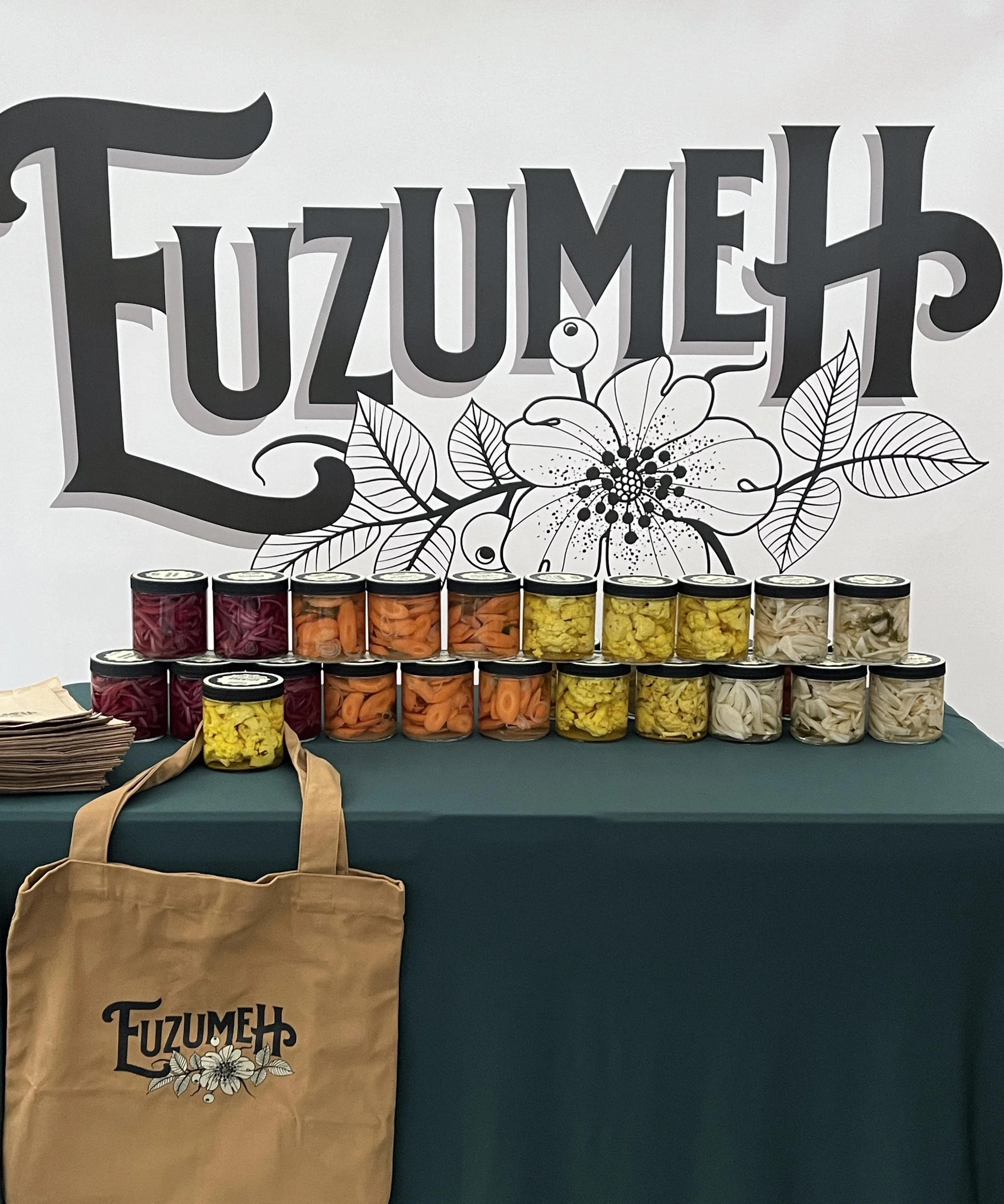 The packaging design for 'Euzumeh' draws on the warm and inviting aesthetic of Tamara’s brand. The choice of a circular label mirrors the communal nature of sharing a meal. I incorporated visual cues from vintage postcards to create a sense of nostalgia and timelessness. The natural world is also a key influence, nodding to the fresh, locally sourced ingredients of the Pacific Northwest.